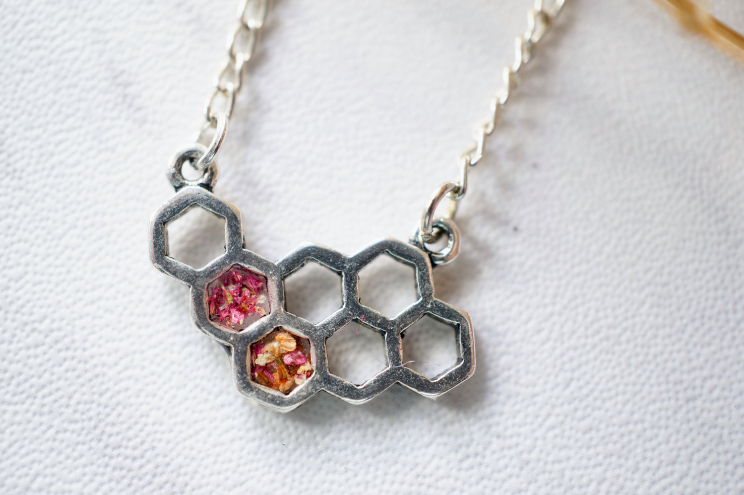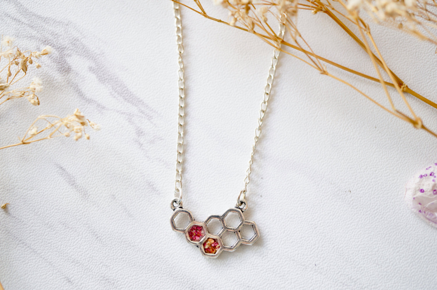 Real Dried Flowers in Honeycomb Resin Necklace in Magenta Mix