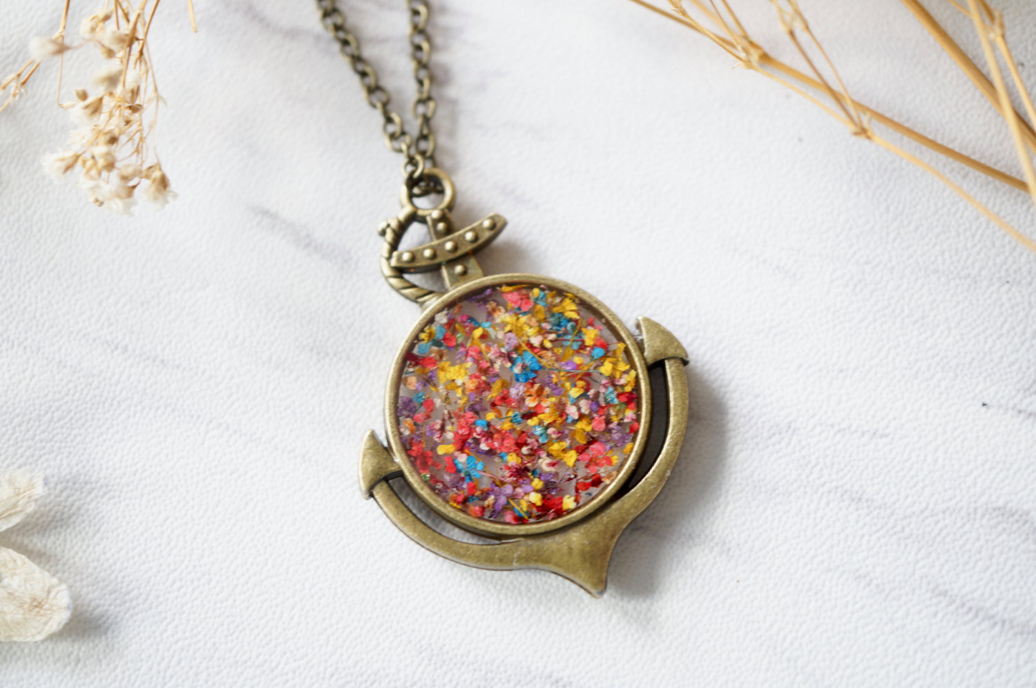 Real Dried Flowers in Resin Anchor Necklace in Party Mix