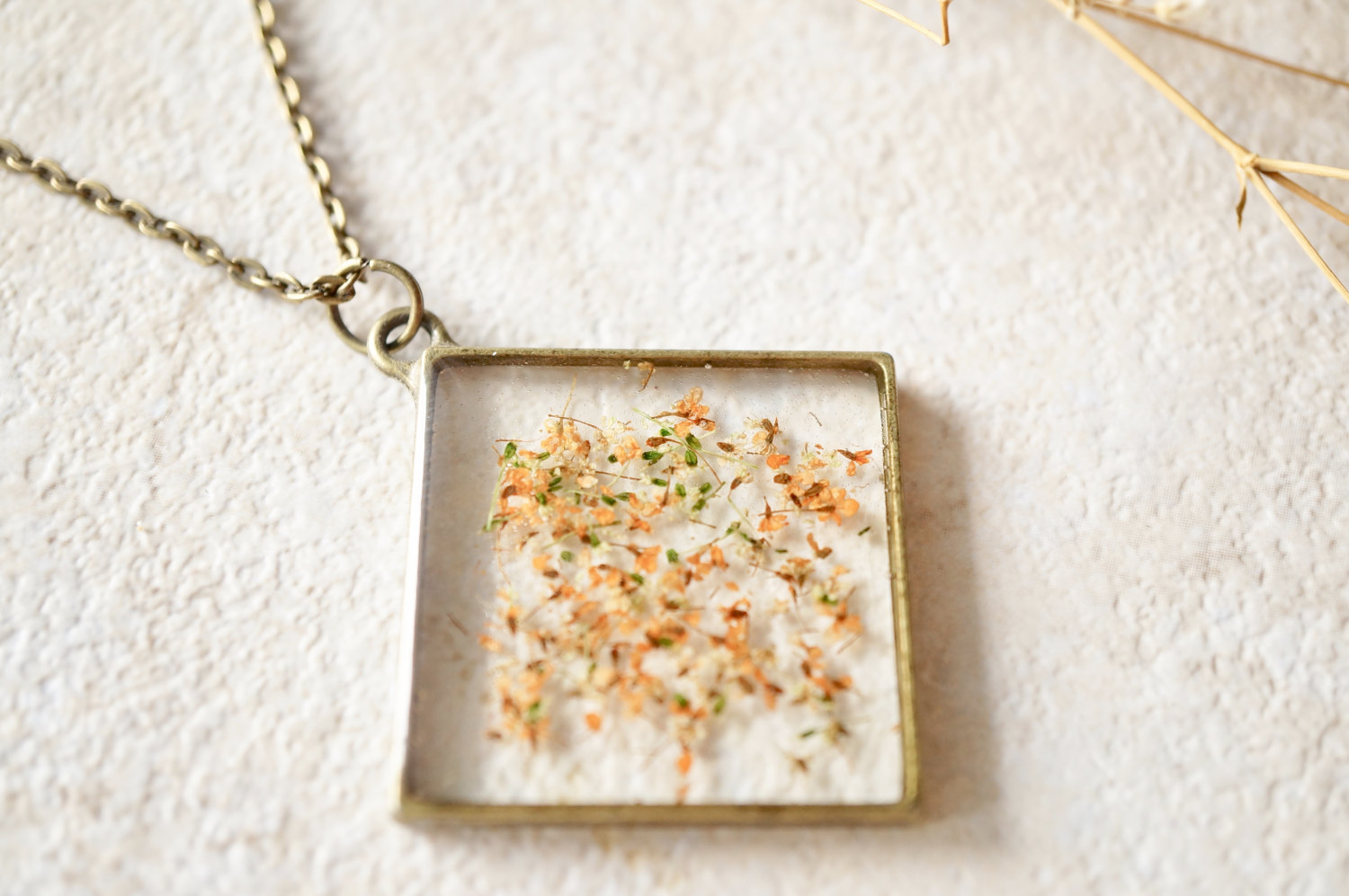 Real Dried Flowers and Resin Necklace, Diamond Orange Mix