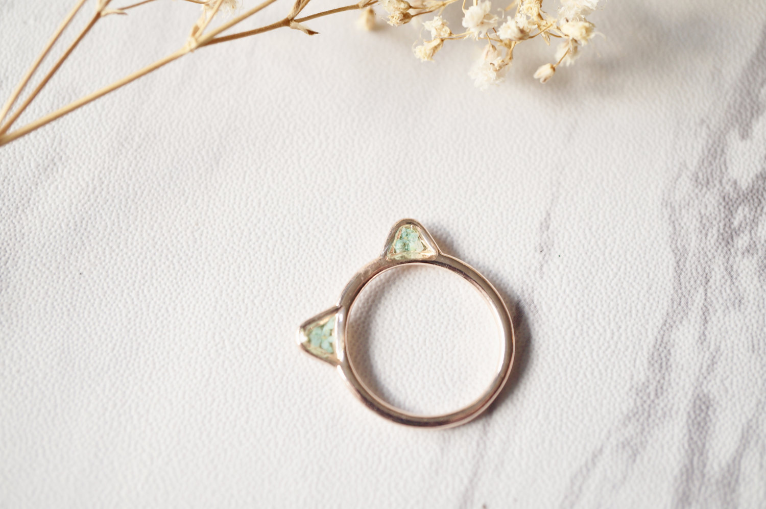 Real Pressed Flowers and Resin Cat Ring in Rose Gold and Mint