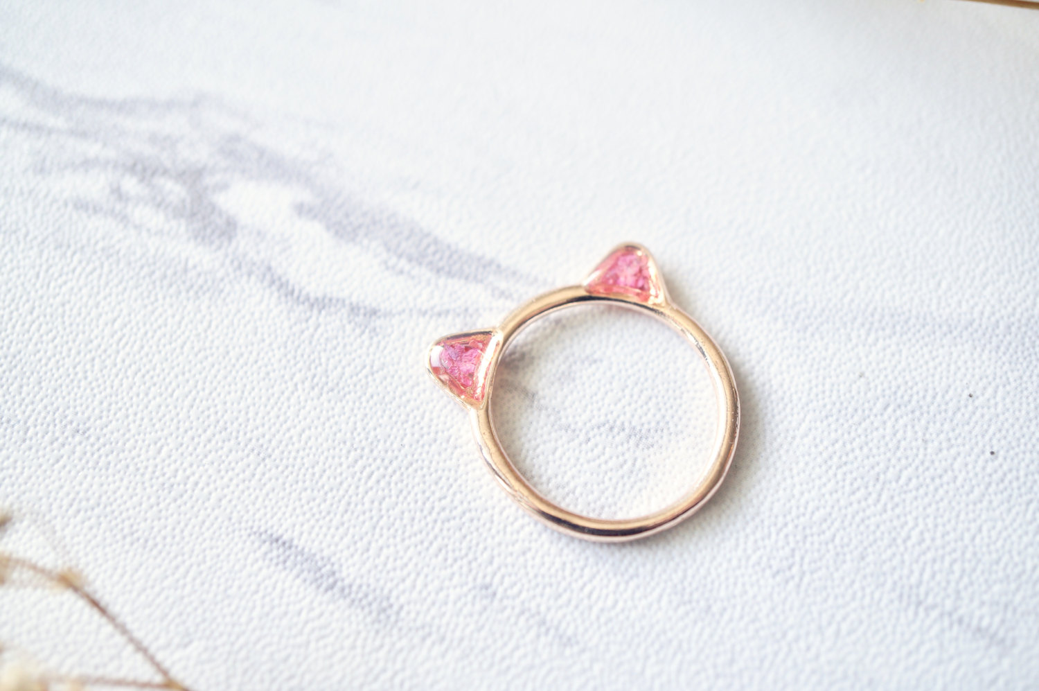 Real Pressed Flowers and Resin Cat Ring in Rose Gold and Pink