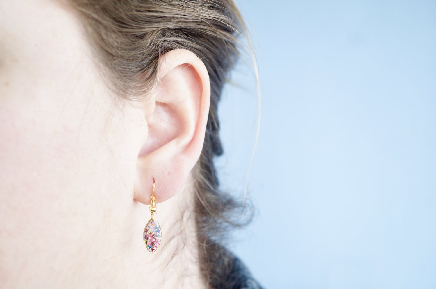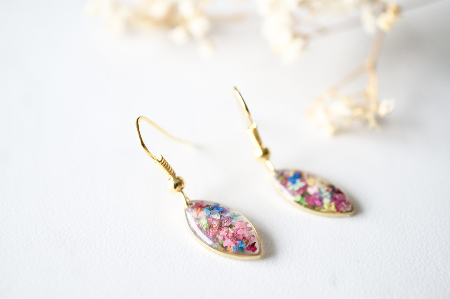 Real Dried Flowers and Resin Earrings in Gold and Party Mix