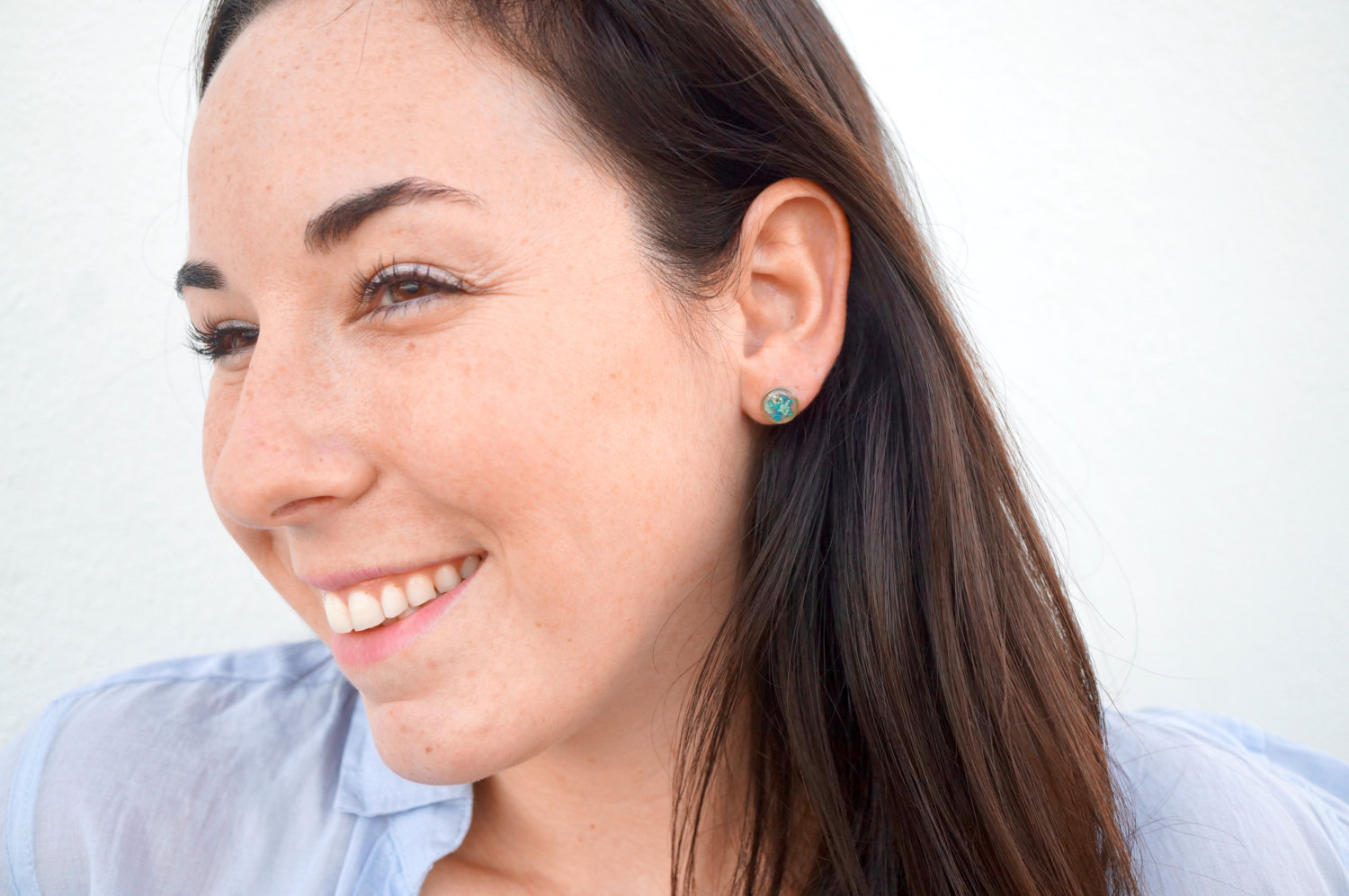 These stud earrings are handmade with real pressed flowers encased in resin. Surrounded by a beautiful gold frame, these studs are like wearing a piece of nature. Each piece is one of a kind. Sometimes we will use the same color combination, but no two are exactly alike!
