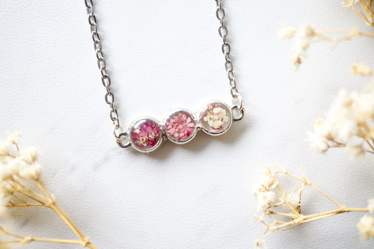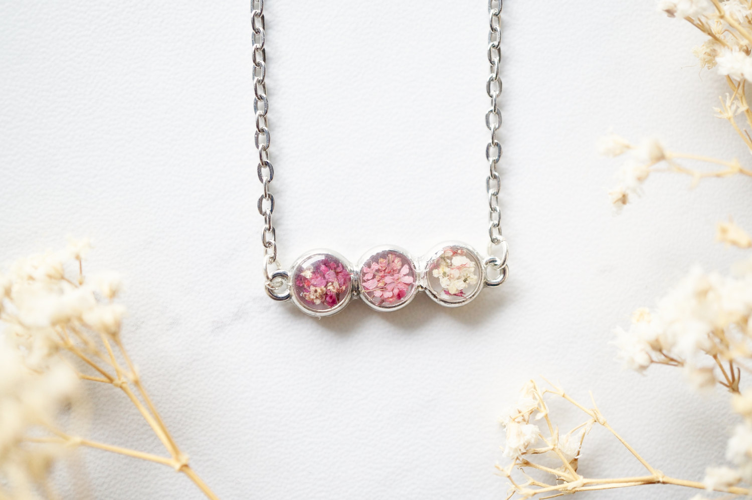 Real Dried Flowers and Resin Necklace Ombre Pink White Bar