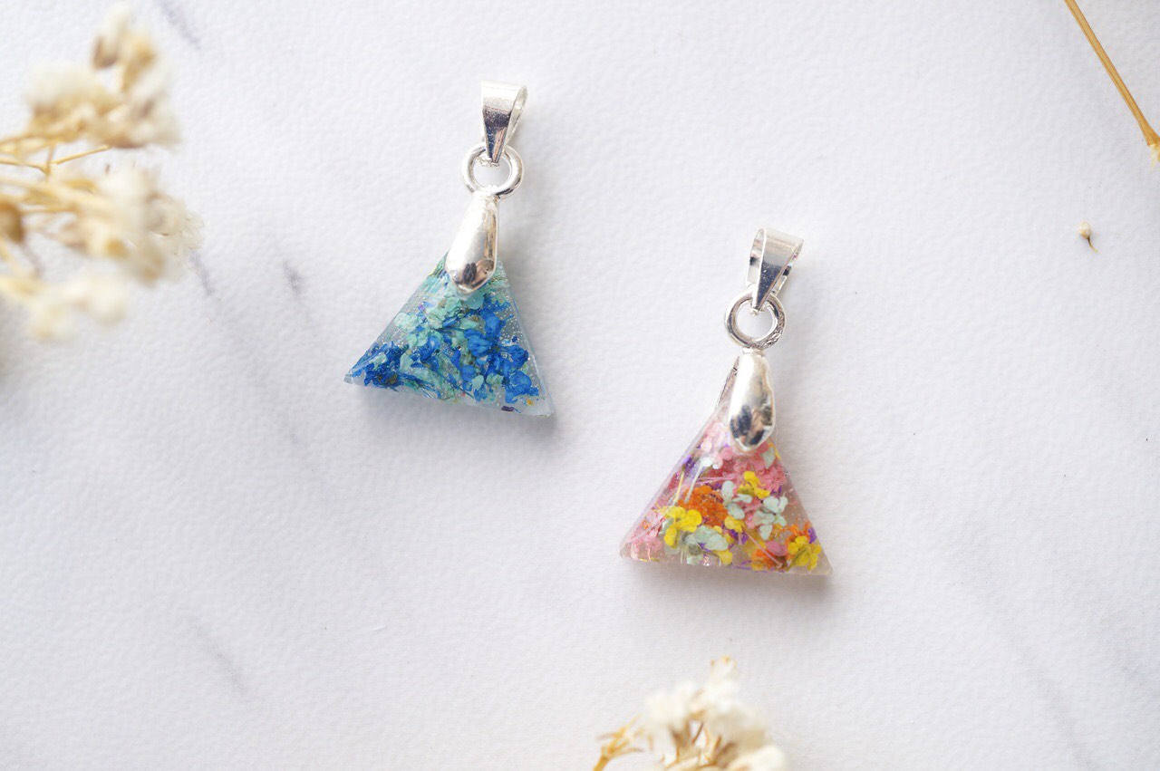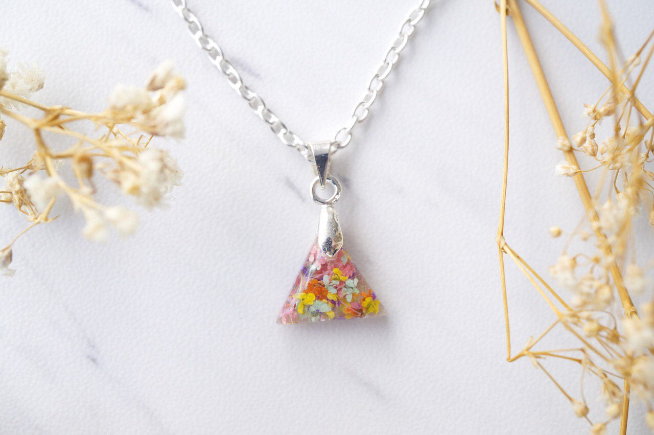 Real Dried Flowers in Triangle Resin Necklace in Pastel Mix