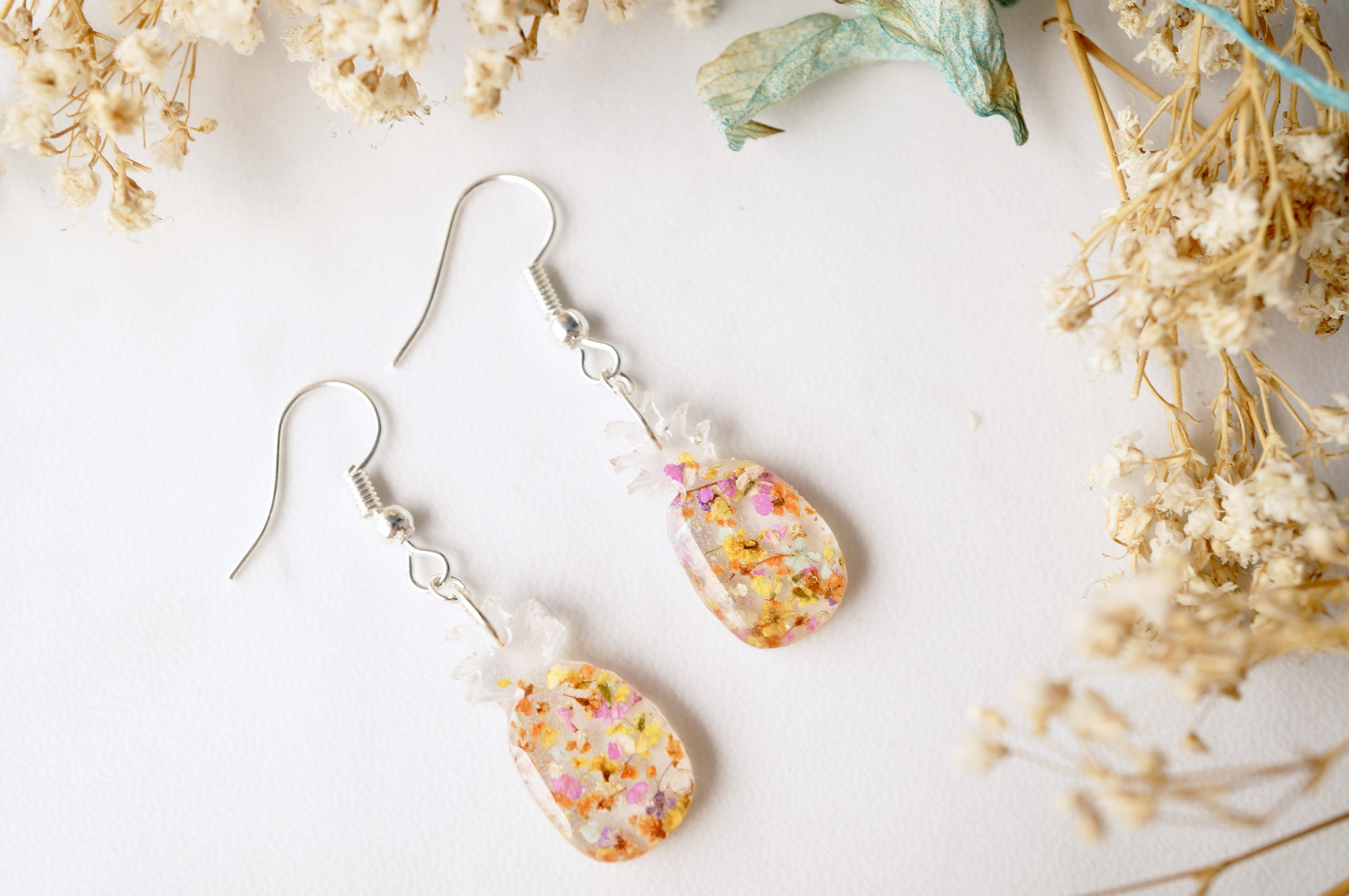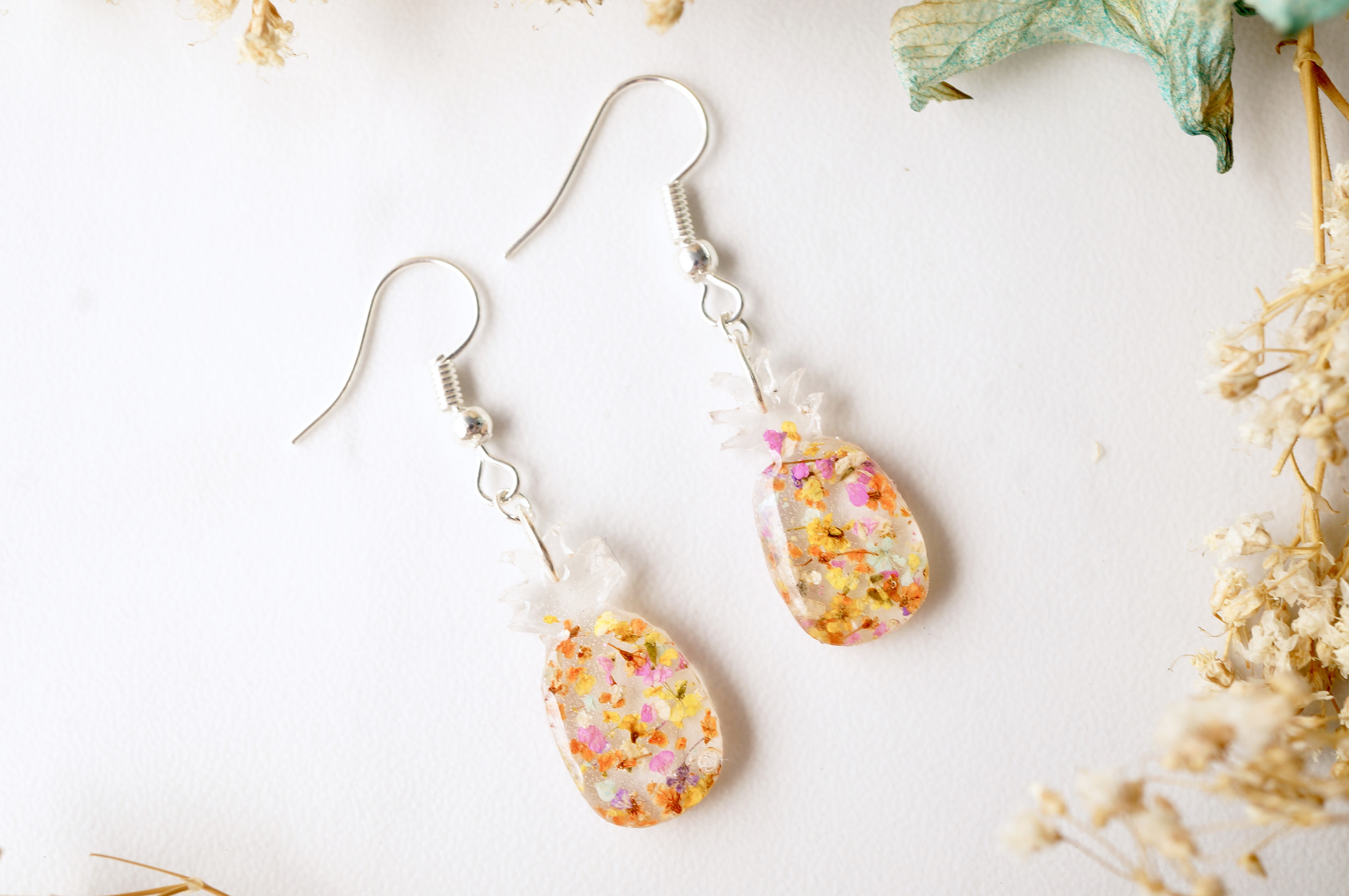 Real Dried Flowers and Resin Earrings, Pineapples in Yellow and Orange Mix